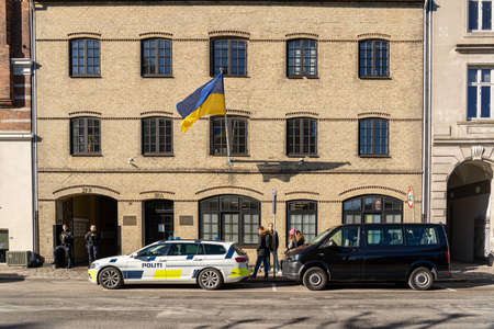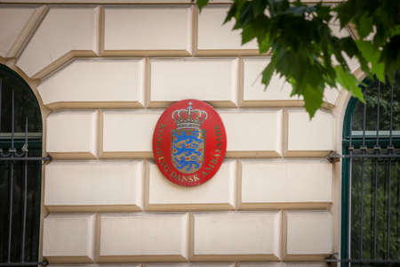 ZAGREB, CROATIA - JUNE 20, 2021: Sign indicating the Danish embassy (Dansk Ambassade) of Zagreb. It is the official diplomatic representation of the Kingdom of Denmark in Croatia.