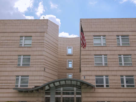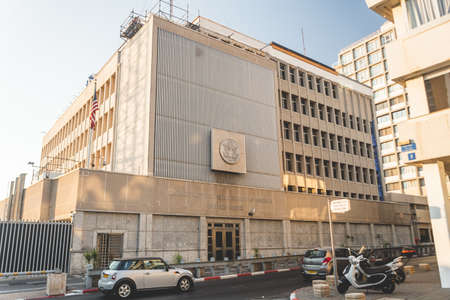 Tel Aviv / Israel-13/10/18: U.S. Embassy Branch Office on HaYarkon Street in Tel Aviv, the former building of the embassy of the USA in Israel since its relocation to the Jerusalem in May 2018