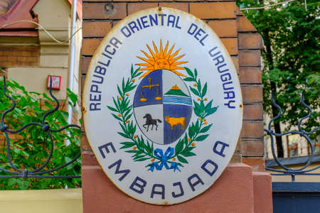 Moscow - 04 august 2018: Sign Embassy of Uruguay in Moscow.