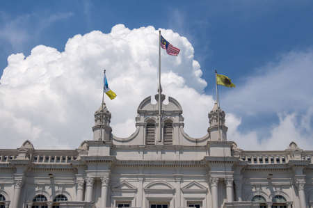 GeorgetownPenang/Malaysia - Feb 15 2020: Detail of architecture City Hall with Malaysia and Penang flag waving.
