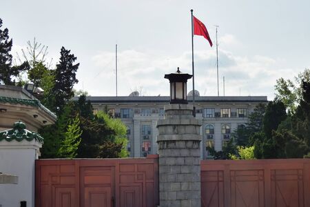 North Korea, Pyongyang - April 29, 2019: View on the buildings of the Chinese embassy in downtown of Pyongyang