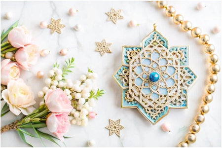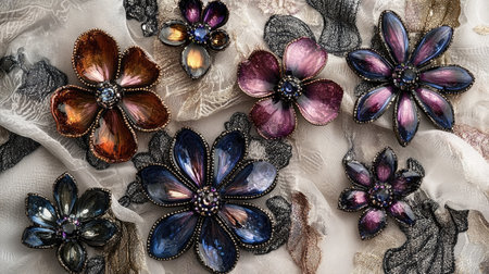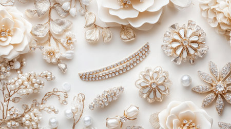 This captivating image features an elegant arrangement of floral accessories and jewelry, showcasing intricate designs that evoke luxury and beauty.