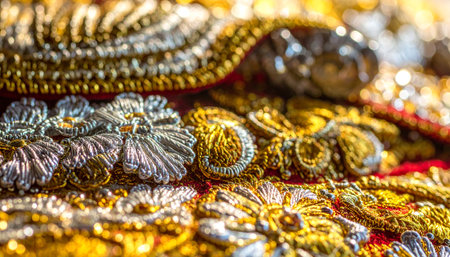 A macro photograph capturing the exquisite detail of traditional embroidery.
