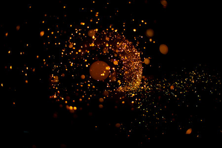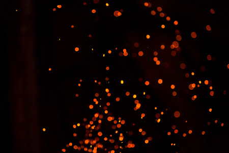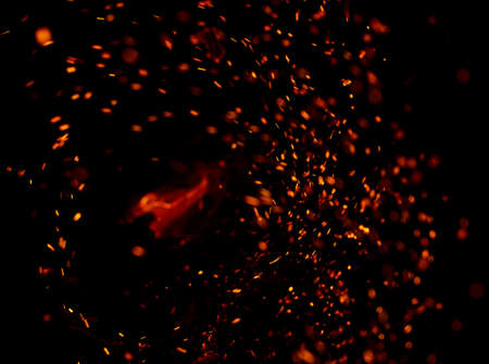 Fire sparks flying like particles on black background. Abstract background.