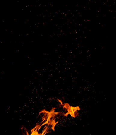 flame of fire with sparks on a black background