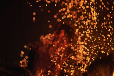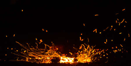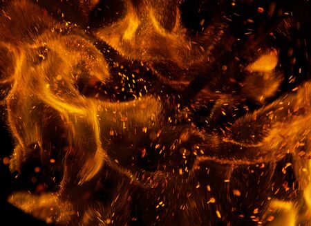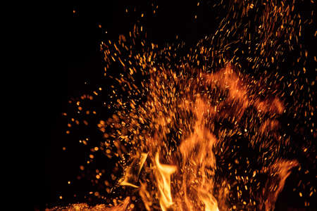 Burning sparks flying. Beautiful flames background.