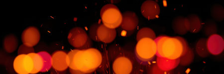 glowing glitter spark orange light fire on black industrial or party banner background