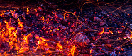 Bright sparkling coals with fire as background