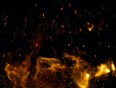 many sparks of fire in dark background