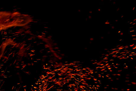 fire flame orange sparkles motion in dark wallpaper pattern background space for copy or your text here