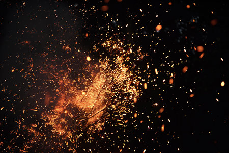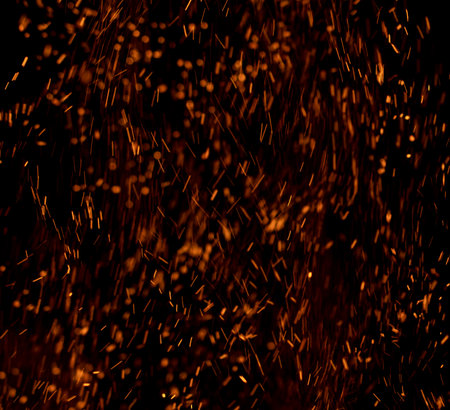 Dynamic fire sparks flying against a black background create a mesmerizing visual effect