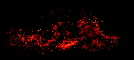 panorama the dying fire and hot red sparks on a black background