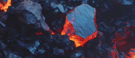 Close-Up Image of Fiery Rocks and Lava, Intense and Striking.