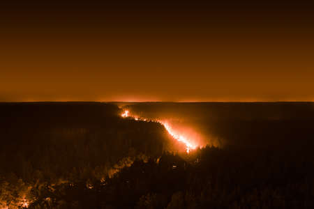 Fire under the forest night, forest fire warning in the dark night