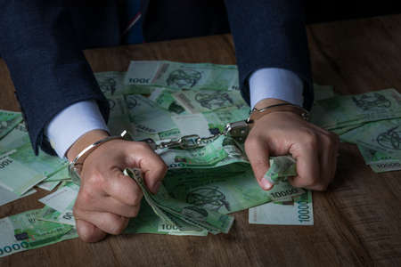 Concept for corruption and bribing fraud finance with Bundle of dollar