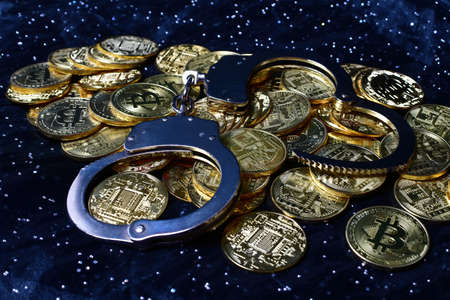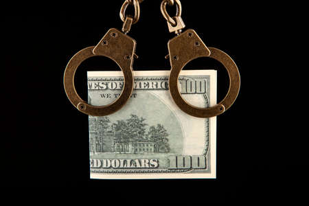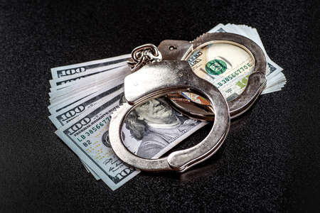 Police handcuffs. Financial crime, dirty money and corruption concept.Crime, Bribing, Fraud