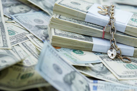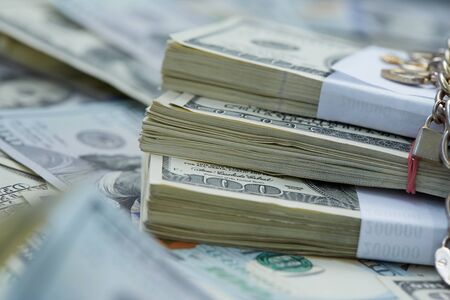 American Dollars Cash Money. One Hundred Dollar Banknotes. Stack of one hundred dollar bills .shallow focus effect.