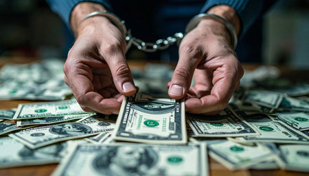 Handcuffed Hands Counting Dollar Bills – Concept of Financial Crime and Arrest