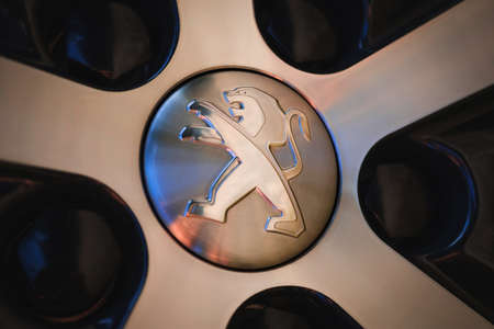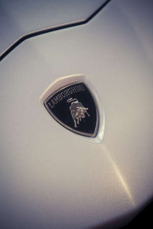 PARIS, FRANCE - SEPTEMBER 22 2011: Lamborghini sportscar symbol on the hood.