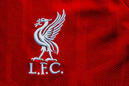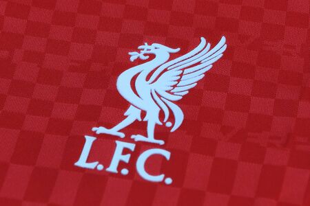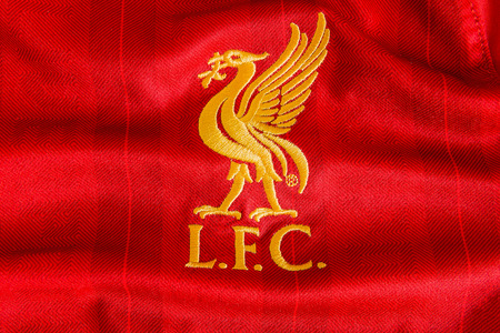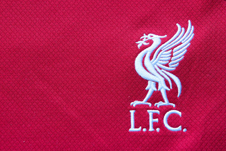 BANGKOK, THAILAND - Mar 16, 2016: the logo of liverpool football club on an official jerseyon 16 March 2016 in Bangkok Thailand