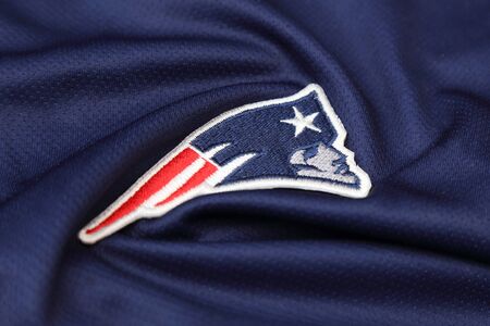 BANGKOK, THAILAND -JUNE 3, 2016: The Logo of New England Patriots on the textile on June 3,2016 in Bangkok Thailand.