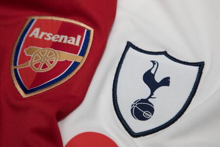 BANGKOK, THAILAND - AUGUST 23: the logo of Arsenal and Tottenham Hotspur on Football Jersey on August 22,2017