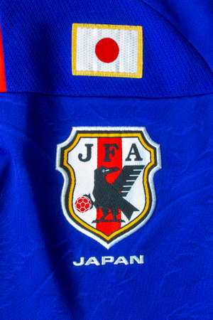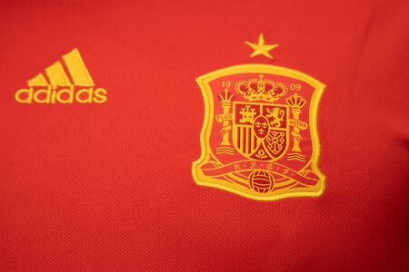 BANGKOK, THAILAND - JUNE 4, 2018 : the logo of Spain National Football Team on Football Jersey