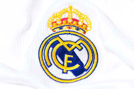 BANGKOK, THAILAND - JULY 10, 2016: The Logo of Real Madrid on Football Jersey on July 10,2016 in Bangkok Thailand.