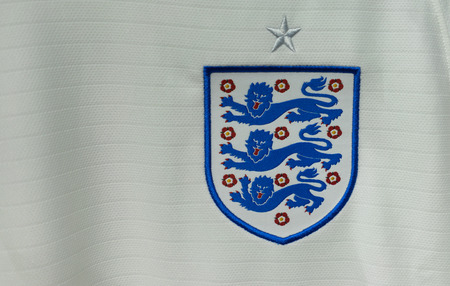 LONDON, UK - OCTOBER 19TH 2015: The Three Lions on an England football shirt, on 19th October 2015.