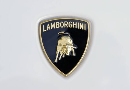 Bucharest, Romania - October 23, 2019: Illustrative editorial close up shot of the Lamborghini logo on a car. Lamborghini is an Italian luxury sports car manufacturer.