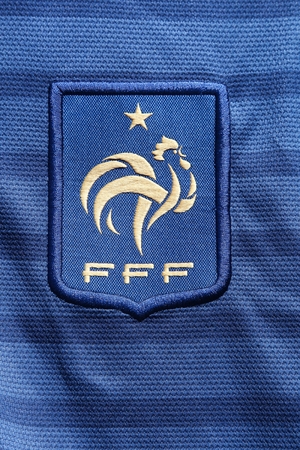BANGKOK, THAILAND - June 9, 2016: The logo of France national football team on official jersey.