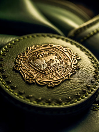embossed gold medal on dark green, symbolizing achievement and excellence in a prestigious competition.