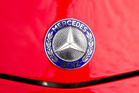 Moscow, Russia - September 10, 2016: Porsche sign on the red car hood
