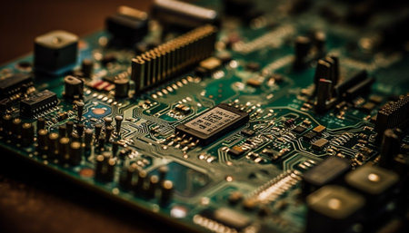 Vivid image of olive green electronic component assembly line showcasing precision in production
