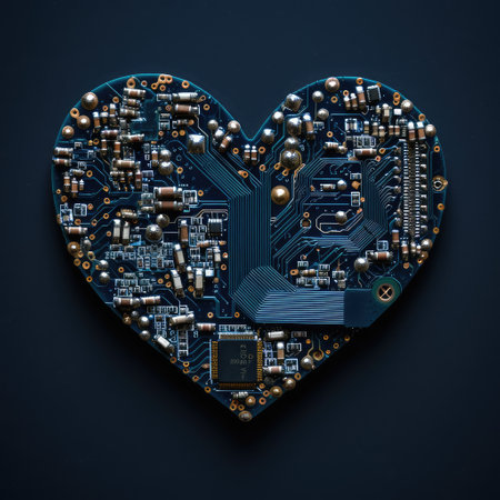 Heart shaped like a microchip. Technologies and life. AI generative.