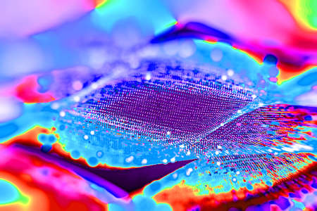 Exploring the Futuristic Marvel: A Macro View of Iridescent Coating on an Advanced Integrated Circuit