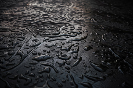 wet asphalt with raindrops forming intricate and delicate pattern, created with generative ai