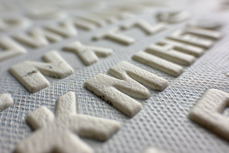 Detailed view of metal letters on a dark black surface, Experimenting with different typography styles for marketing campaigns