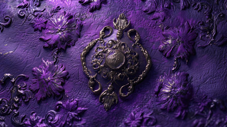 Luxury metal ornament on a purple background. Close-up.