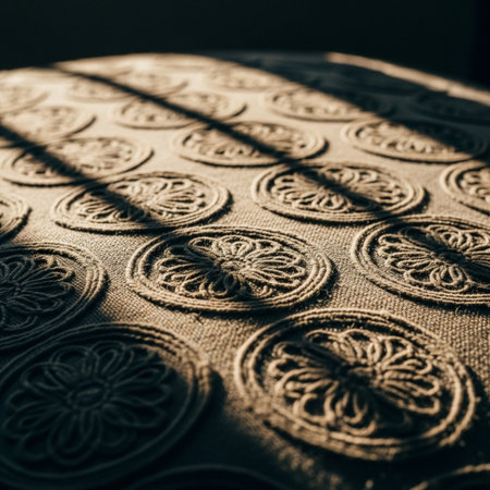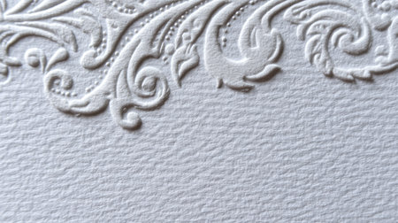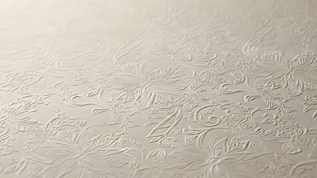 Detailed view of embossed paper texture reveals delicate patterns and subtle shadows created by soft lighting, emphasizing craftsmanship and tactile qualities.