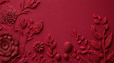 This image showcases an exquisite three-dimensional floral embossed texture on a rich red background, perfect for various creative design projects.