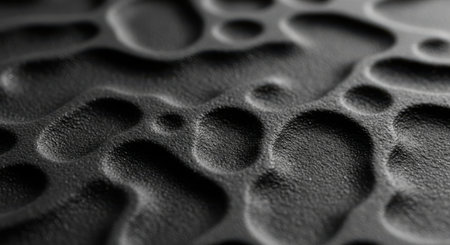 Patterns showing extreme close-up black and white abstract texture of a rough, bumpy, and uneven surface with intricate patterns and deep shadows creating a...