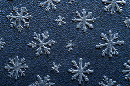 Delicate snowflakes intricately detailed against a vibrant blue background, showing winter's beauty.