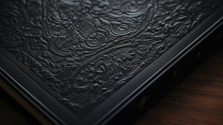 a macro shot of the texture on an antique black book cover