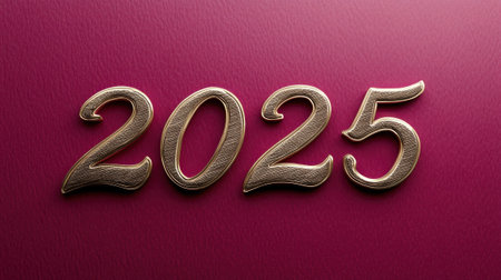 Stylish gold 2025 numbers on a vibrant magenta canvas for New Year.