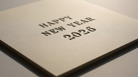 Card showing embossed happy new year 2026 text on a textured card : new year, 2026,...