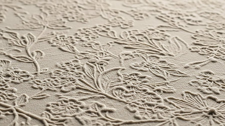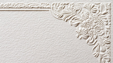 Textured embossed paper featuring an intricate floral design perfect for background use. Ideal for invitations, stationery, and artistic projects.