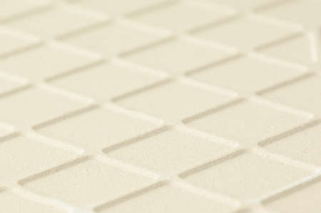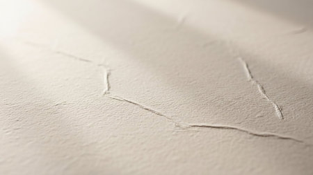 A shallow depth of field shot focuses on a textured light beige surface with faint cracks and soft diagonal light casting subtle shadows.