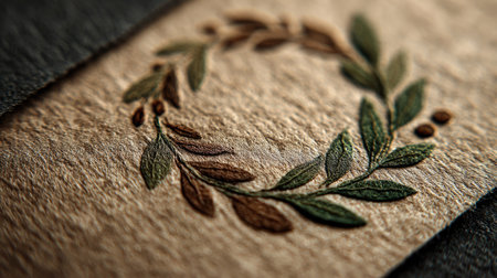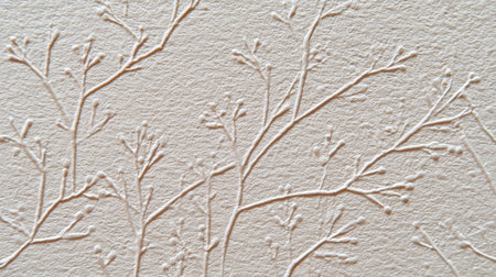 Detailed embossing showcases fine branches and buds on textured paper, highlighting craftsmanship and artistry in a serene and minimalist design.