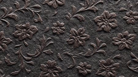 The surface shows a detailed floral engraving on textured paper, emphasizing a historical style with unique patterns and dark tones.